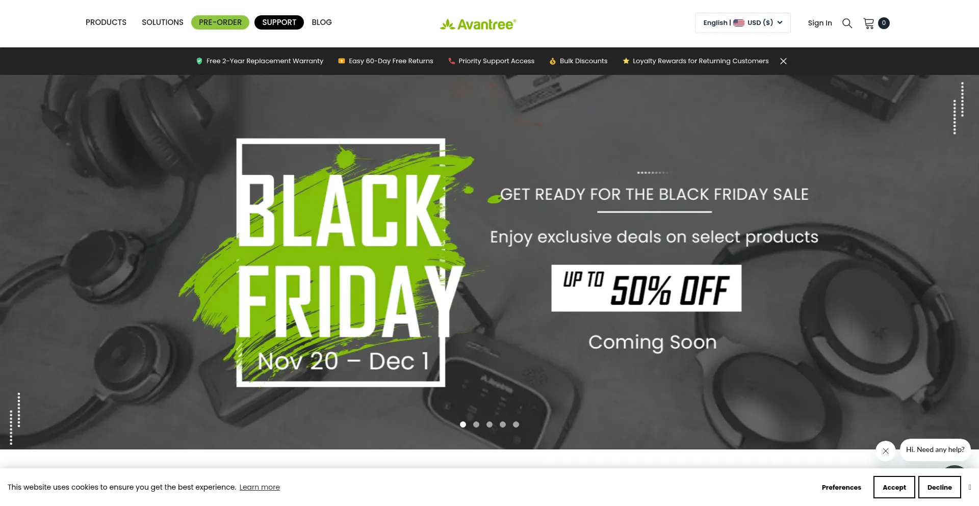 The avantree.com website utilizes free e-commerce platform solutions, which may indicate cost-conscious operations but could also suggest limitations in security features, customer support, or advanced functionality compared to enterprise-grade solutions.