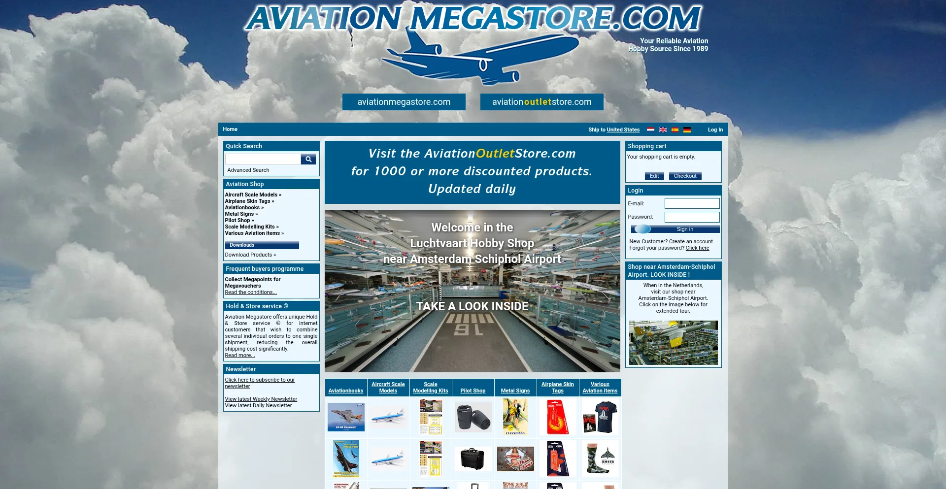 Analysis indicates that aviationmegastore.com operates as an e-commerce platform facilitating online transactions for goods or services. The website implements shopping cart functionality, payment processing systems, and product catalog features typical of commercial retail operations.