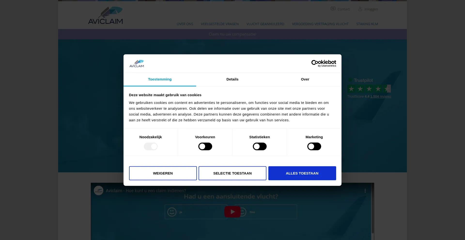The website implements cookie consent mechanisms in compliance with privacy regulations such as GDPR or CCPA. This demonstrates that aviclaim.nl adheres to data protection standards and provides users with control over personal data collection practices.