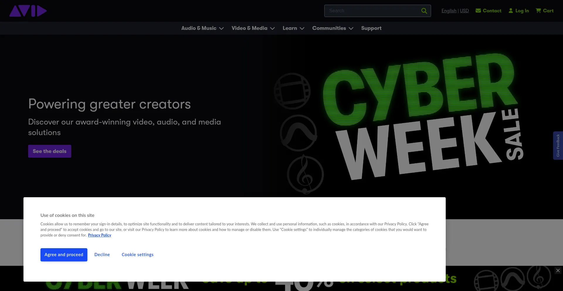 The website implements cookie consent mechanisms in compliance with privacy regulations such as GDPR or CCPA. This demonstrates that avid.com adheres to data protection standards and provides users with control over personal data collection practices.