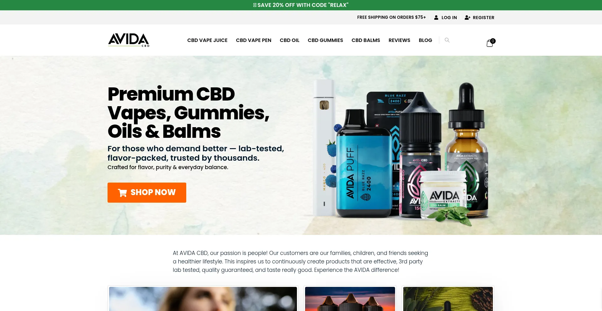 The website leverages popular product names and brands to attract traffic and generate user interest. These products may be offered through promotional campaigns or discount strategies designed to increase visitor engagement and conversion rates for avidacbd.com.