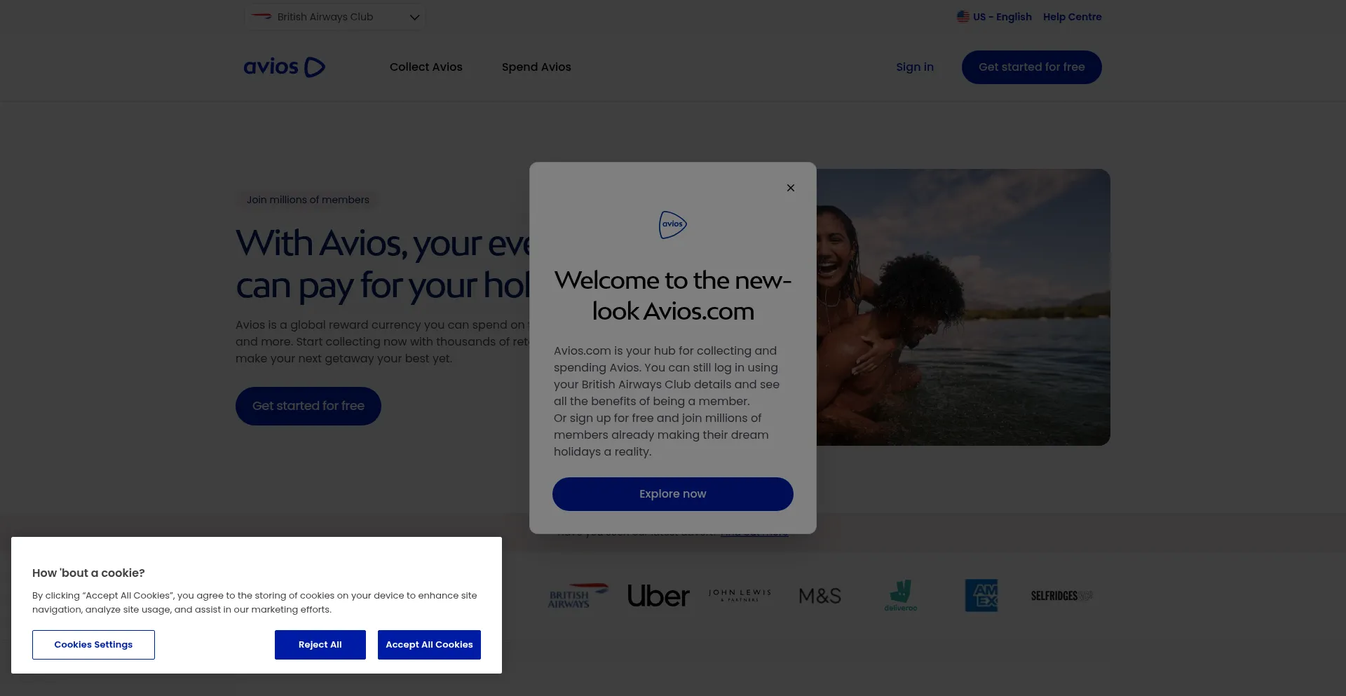 The website implements cookie consent mechanisms in compliance with privacy regulations such as GDPR or CCPA. This demonstrates that avios.com adheres to data protection standards and provides users with control over personal data collection practices.