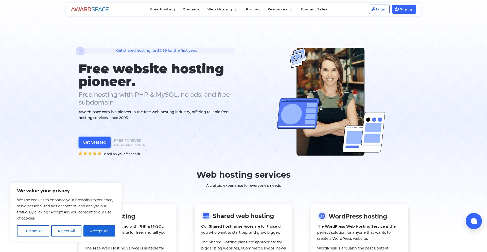 AwardSpace.com is a pioneer in web hosting, offering Free Hosting with PHP/MySQL and no ads, alongside premium plans like Shared, WordPress, Semi-Dedicated, and VPS Cloud Hostin...