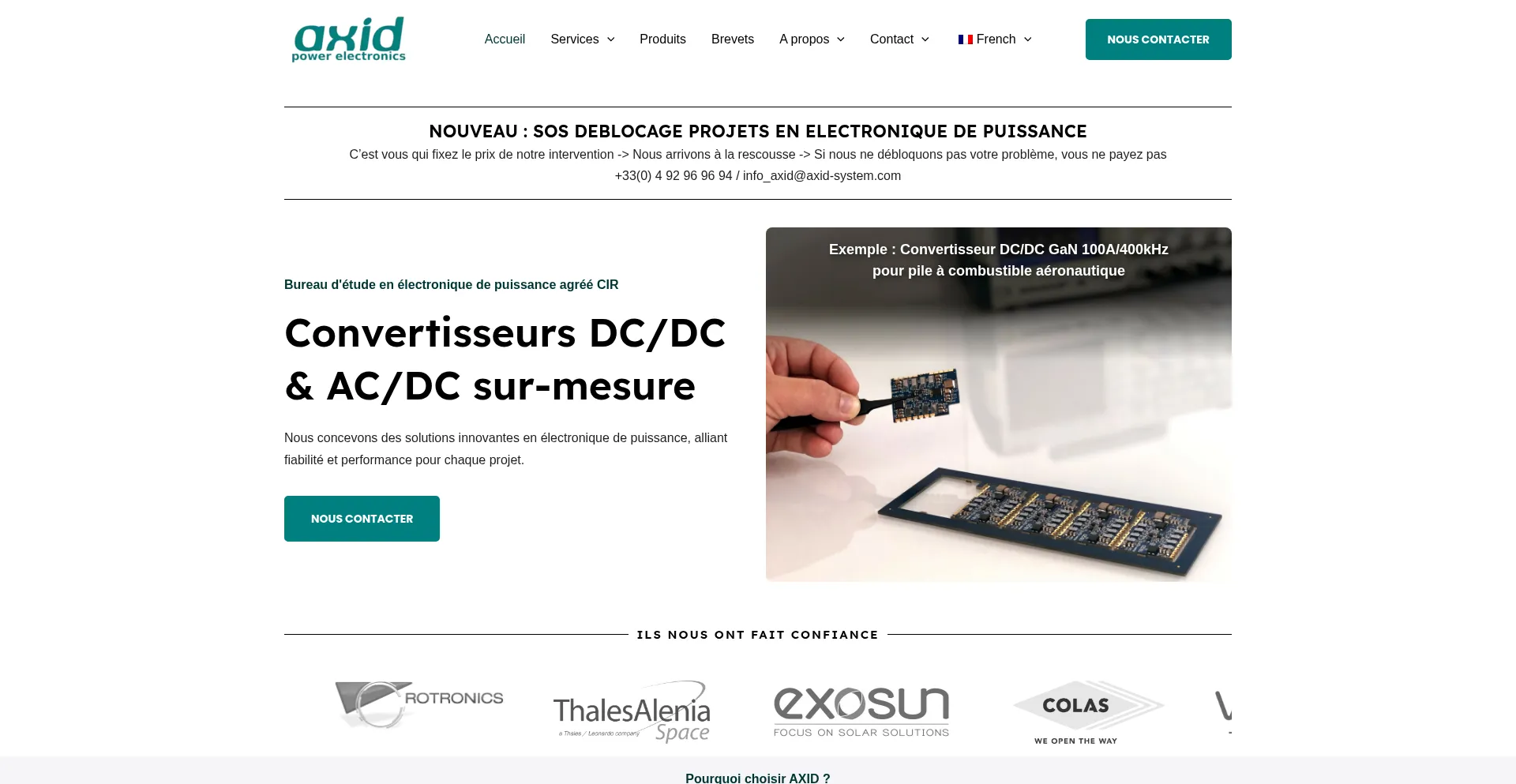 AXID développe des convertisseurs de puissance innovants : PFC, onduleurs, bancs de test et alimentations industrielles de 1 kW à 200 kW. Expertise en électronique de puissan...