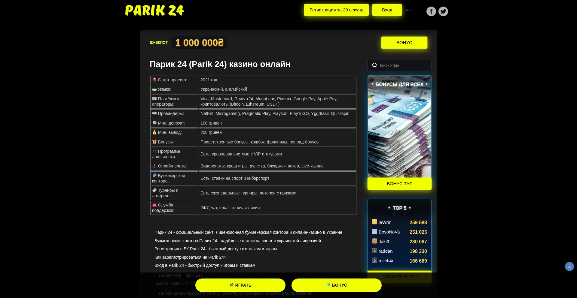 Parik24 Казино Украины (Парик24) ᐉ Вход и регистрация