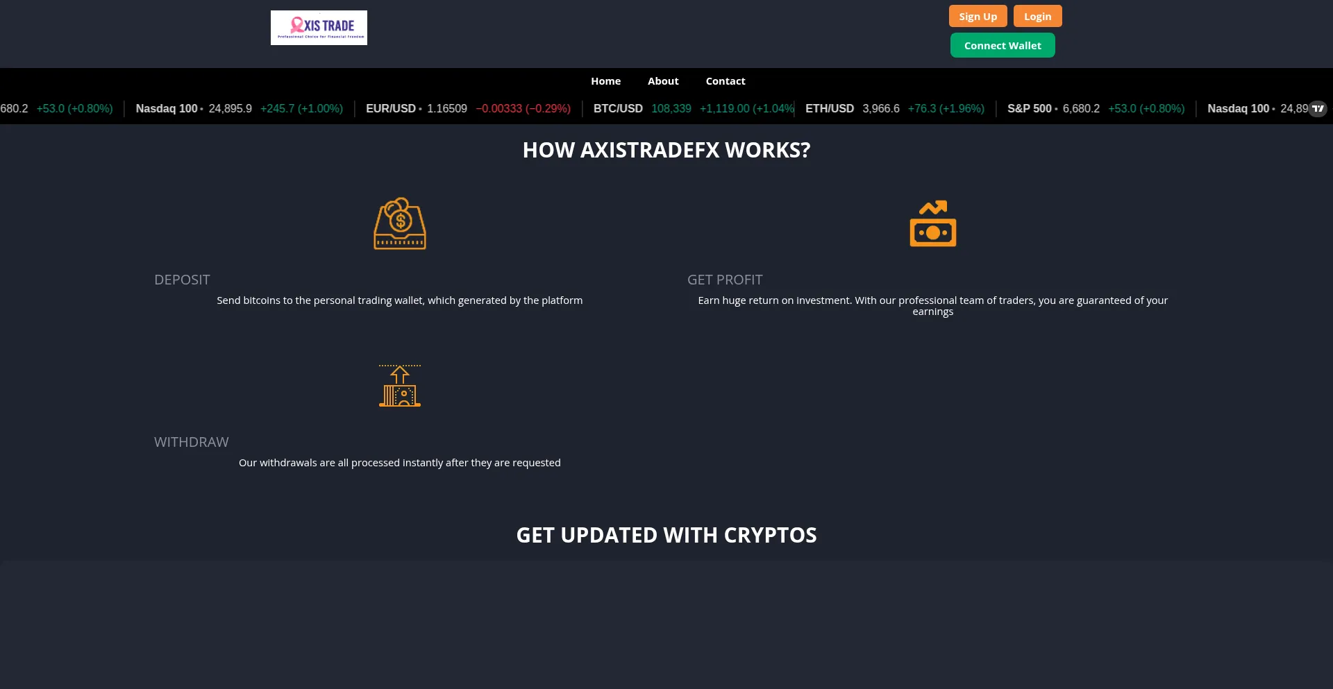 Axistradefx offers secure and profitable investments in crypto, binary options, and forex.