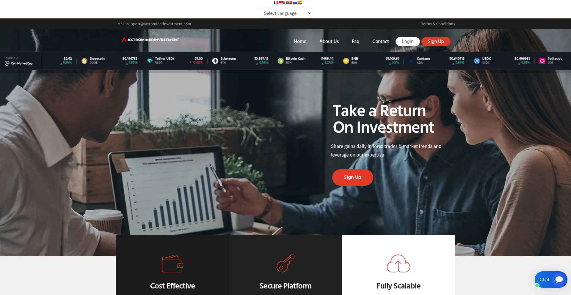 Axtrominerinvestment.com operates as a suspicious website with multiple red flags that compromise its trustworthiness and user safety. The platform exhibits concerning characteristics including misleading information, questionable operational practices, or potential malware distribution that poses significant risks to visitors.
