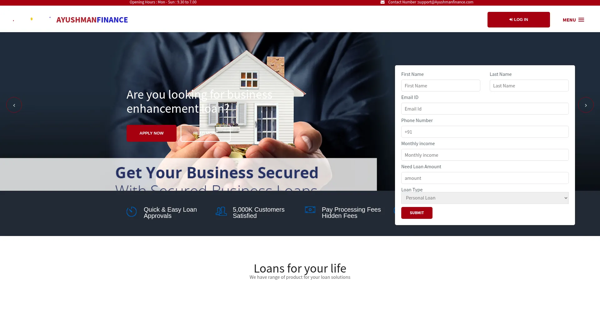The ayushmanfinance.com website implements data collection forms requesting personal information including names, email addresses, phone numbers, or other sensitive details. Users should verify the legitimacy of it and review privacy policies before submitting personal data.
