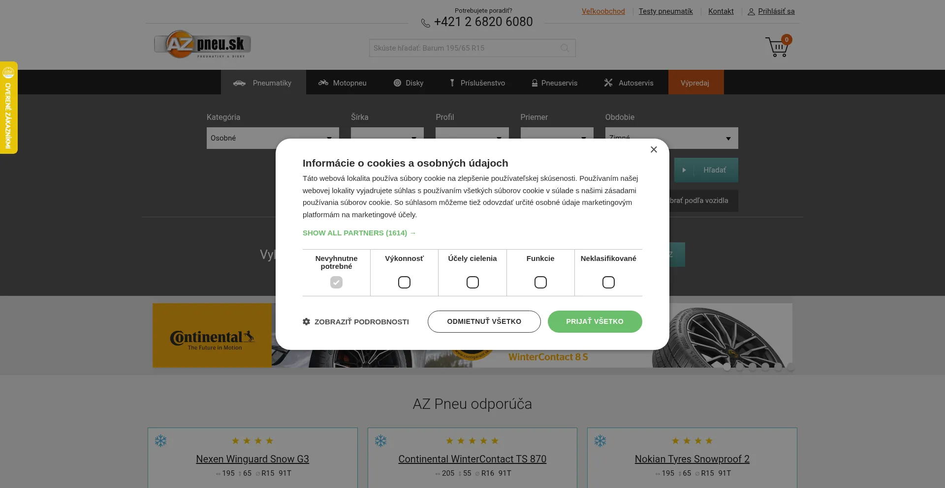 The website implements cookie consent mechanisms in compliance with privacy regulations such as GDPR or CCPA. This demonstrates that az-pneu.sk adheres to data protection standards and provides users with control over personal data collection practices.