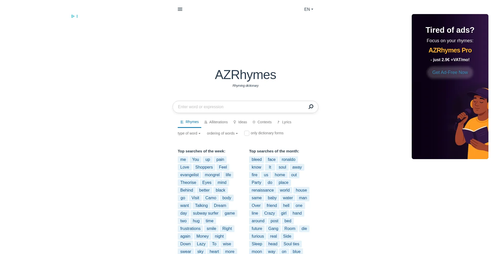 Rhyming dictionary for lyricists, rappers and poets - AZRhymes