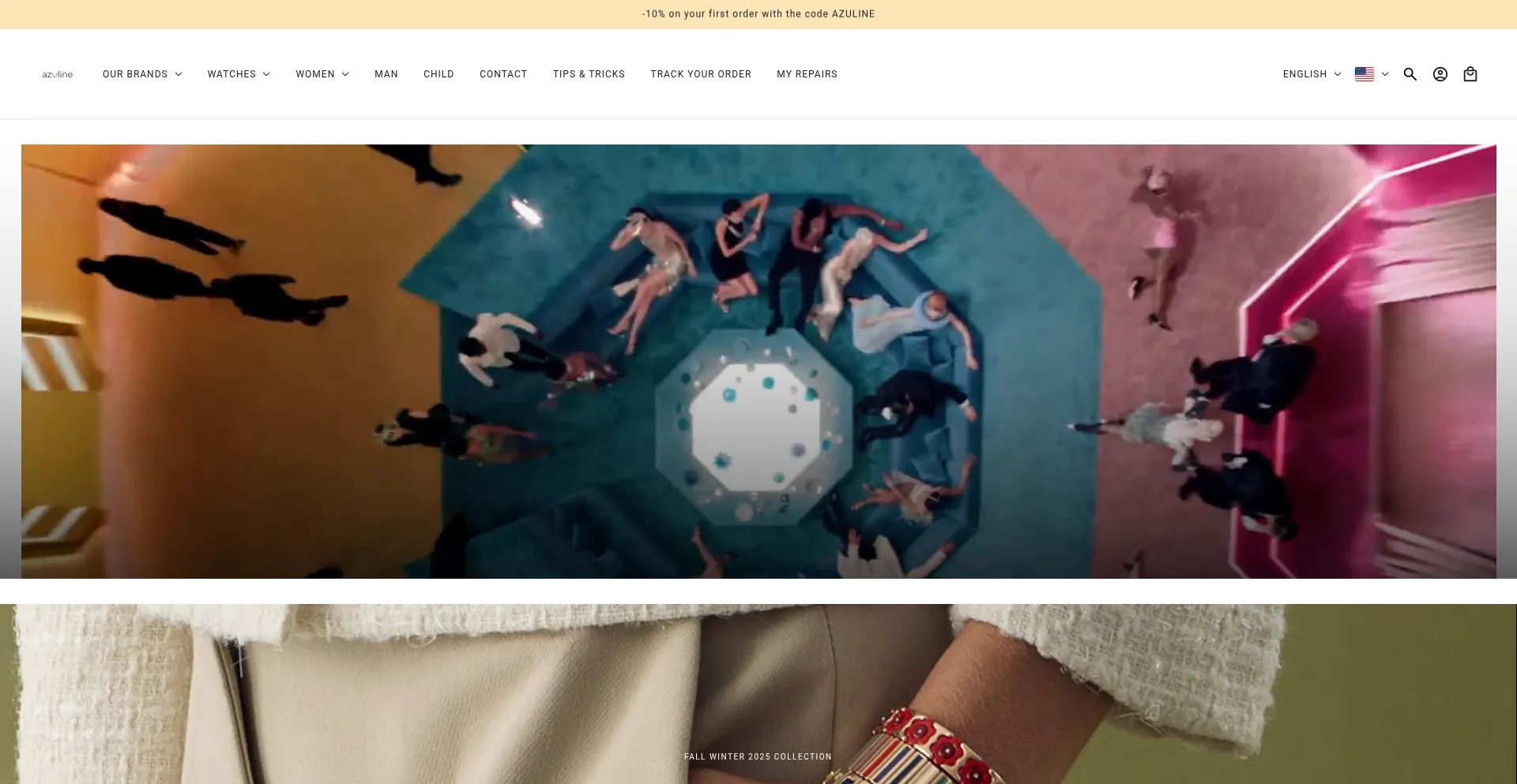 The azuline.com website uses Google Tag Manager to add and update tracking tags on its website.