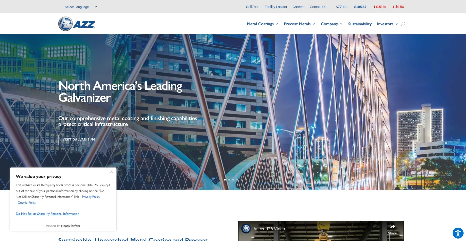 The website implements cookie consent mechanisms in compliance with privacy regulations such as GDPR or CCPA. This demonstrates that azz.com adheres to data protection standards and provides users with control over personal data collection practices.