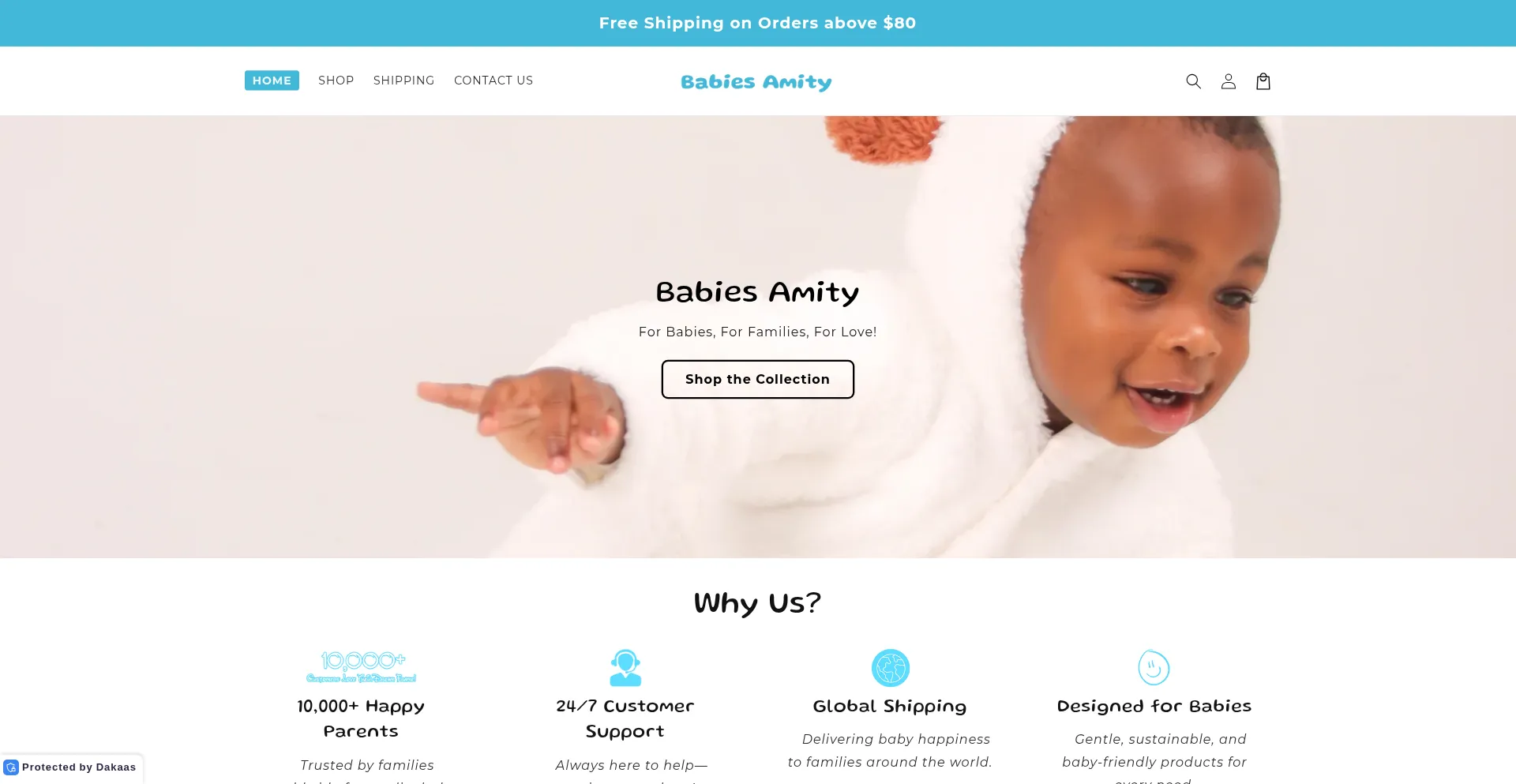 Our analyzer determines that website babies-amity.com is using Shopify CMS. Shopify is a popular e-commerce platform, powering around 4.4% of websites globally.