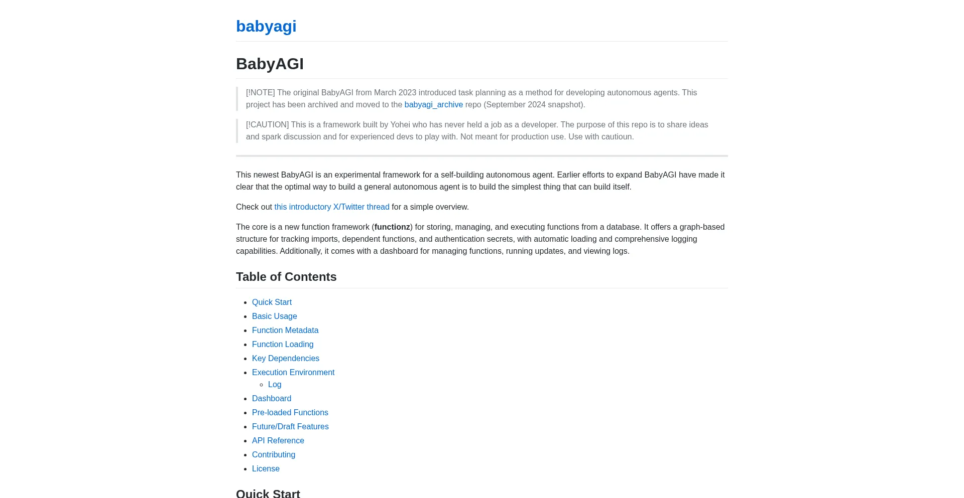 The original BabyAGI from March 2023 introduced task planning as a method for developing autonomous agents.
