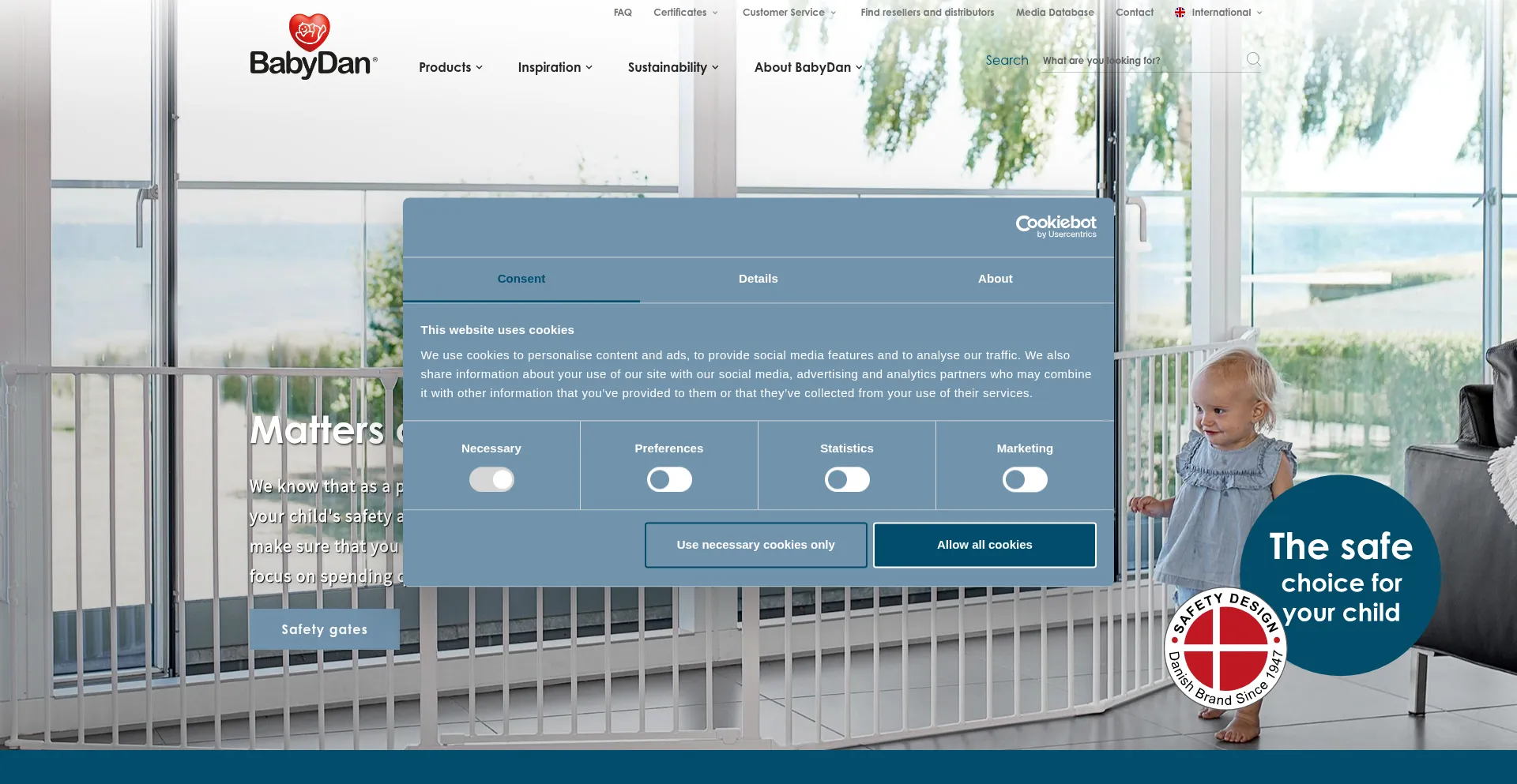 The website implements cookie consent mechanisms in compliance with privacy regulations such as GDPR or CCPA. This demonstrates that babydan.com adheres to data protection standards and provides users with control over personal data collection practices.