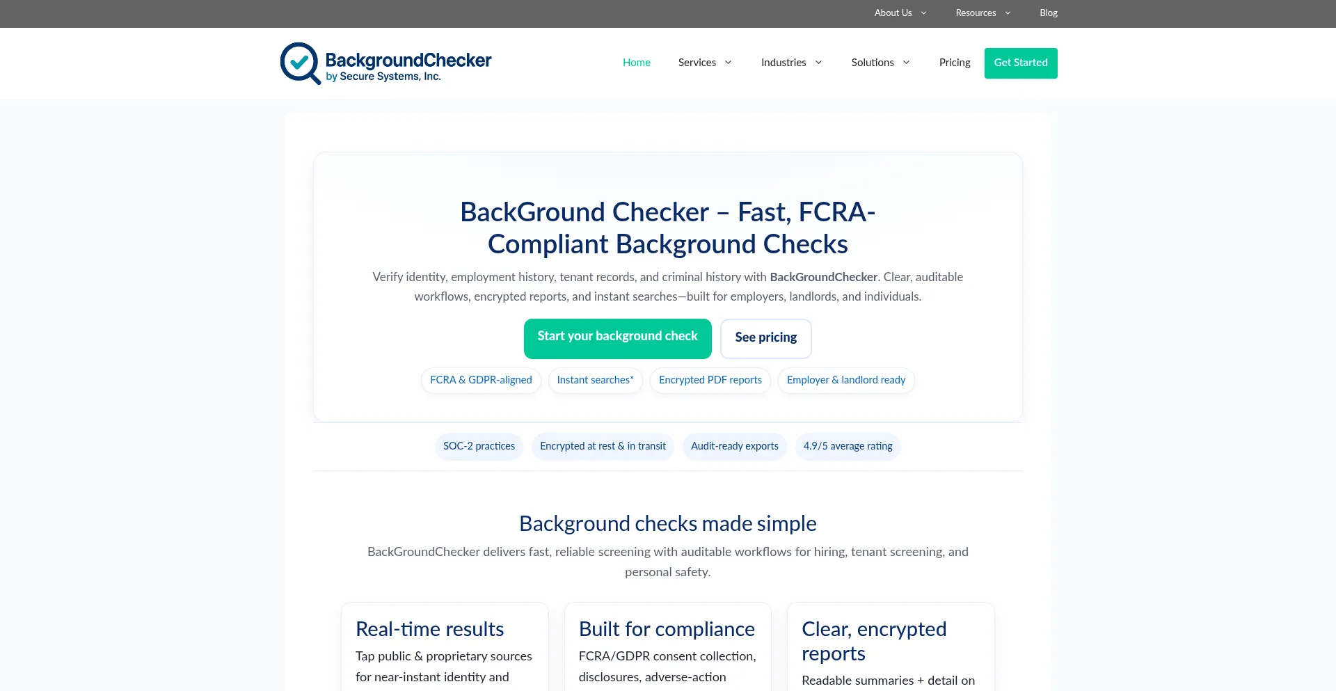 Run fast, reliable, FCRA-compliant background checks with BackGroundChecker. Instant identity & criminal searches, encrypted reports, employer & landlord workflows.