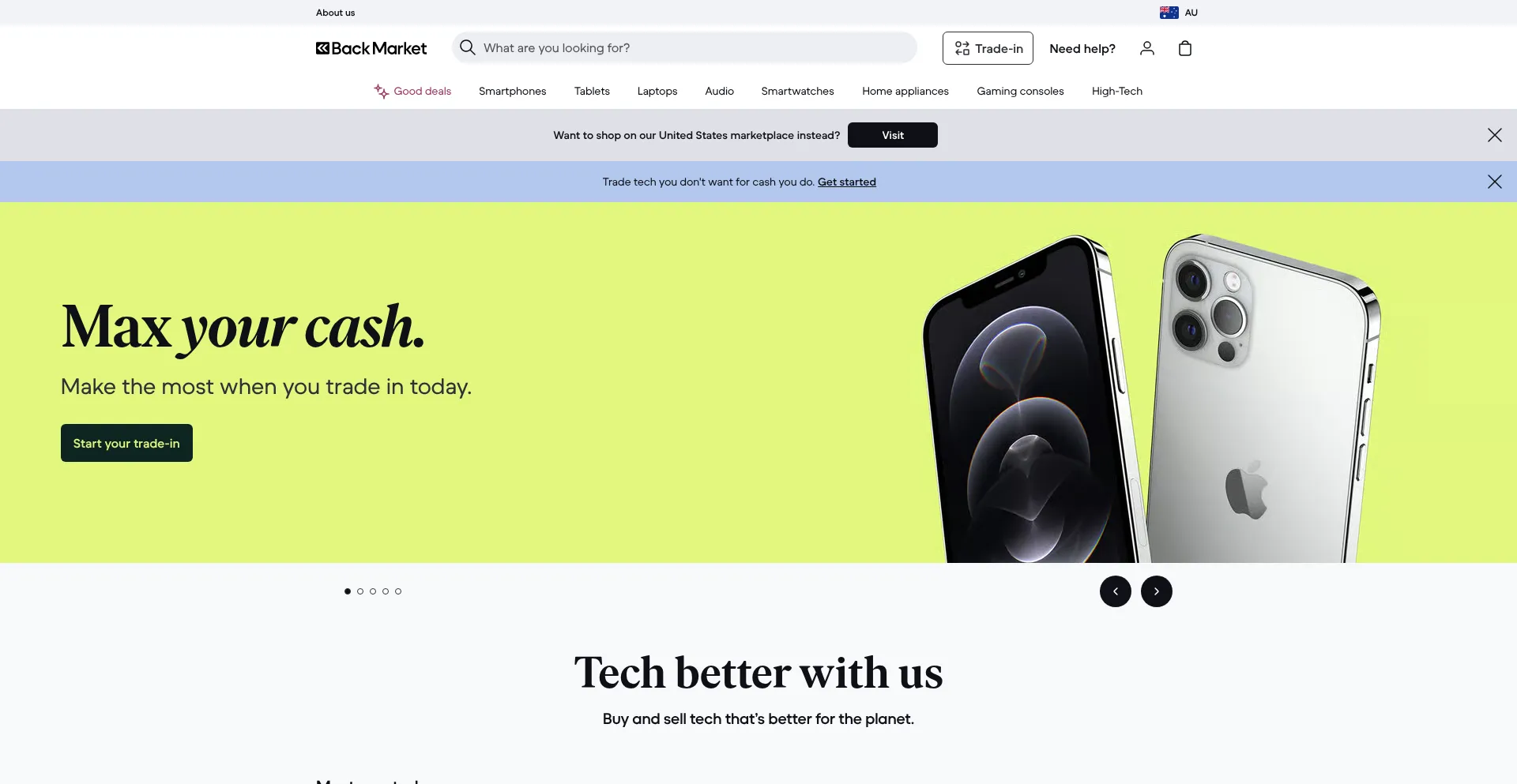 The website leverages popular product names and brands to attract traffic and generate user interest. These products may be offered through promotional campaigns or discount strategies designed to increase visitor engagement and conversion rates for backmarket.com.au.