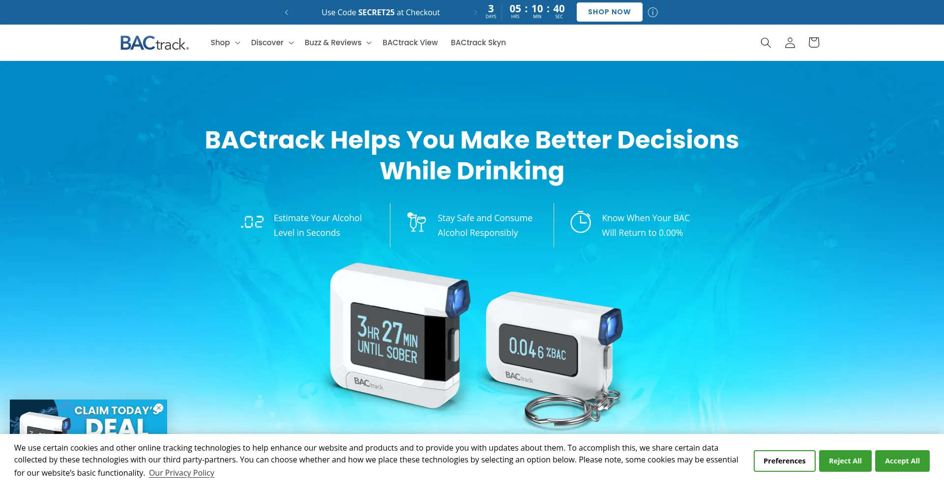 The website implements cookie consent mechanisms in compliance with privacy regulations such as GDPR or CCPA. This demonstrates that bactrack.com adheres to data protection standards and provides users with control over personal data collection practices.