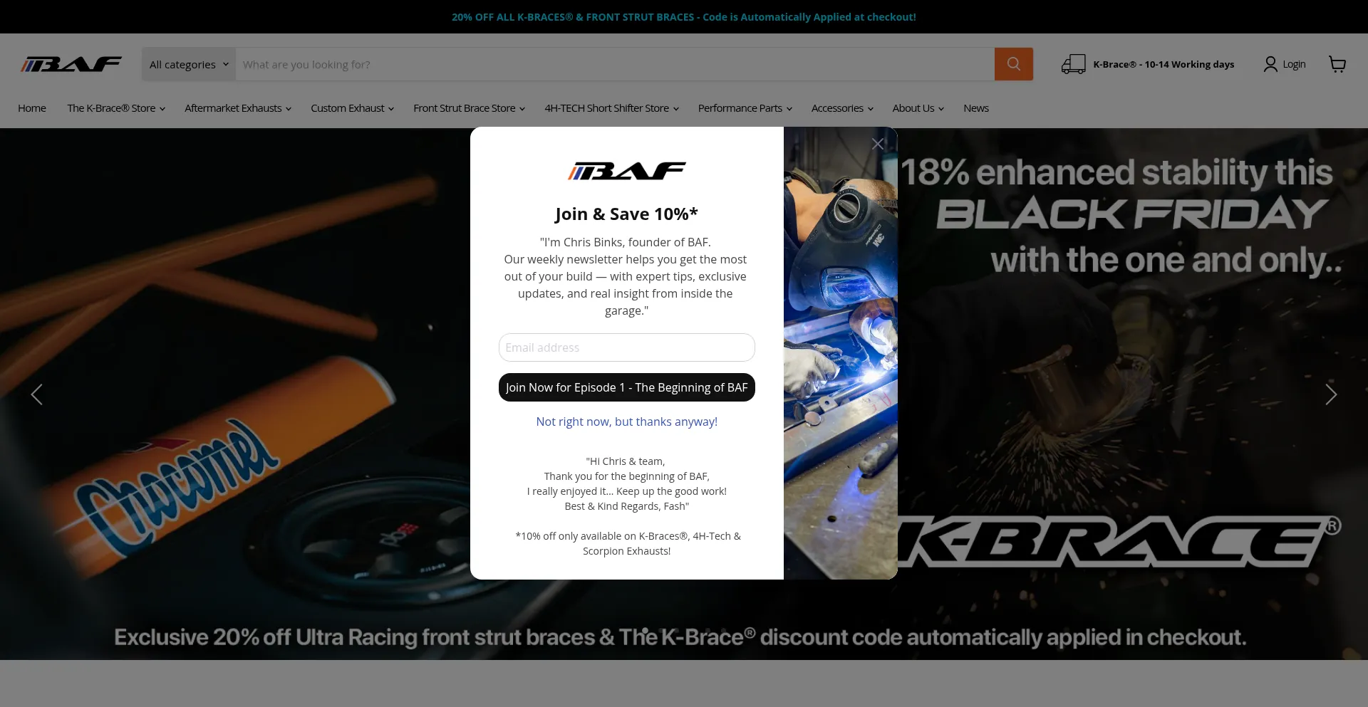 Welcome to BAF Motorsport, Home of the K-Brace. Explore our full range of products online including Rear Strut, Braces, Front Strut Braces, Exhaust Systems, Air Intakes, Suspens...