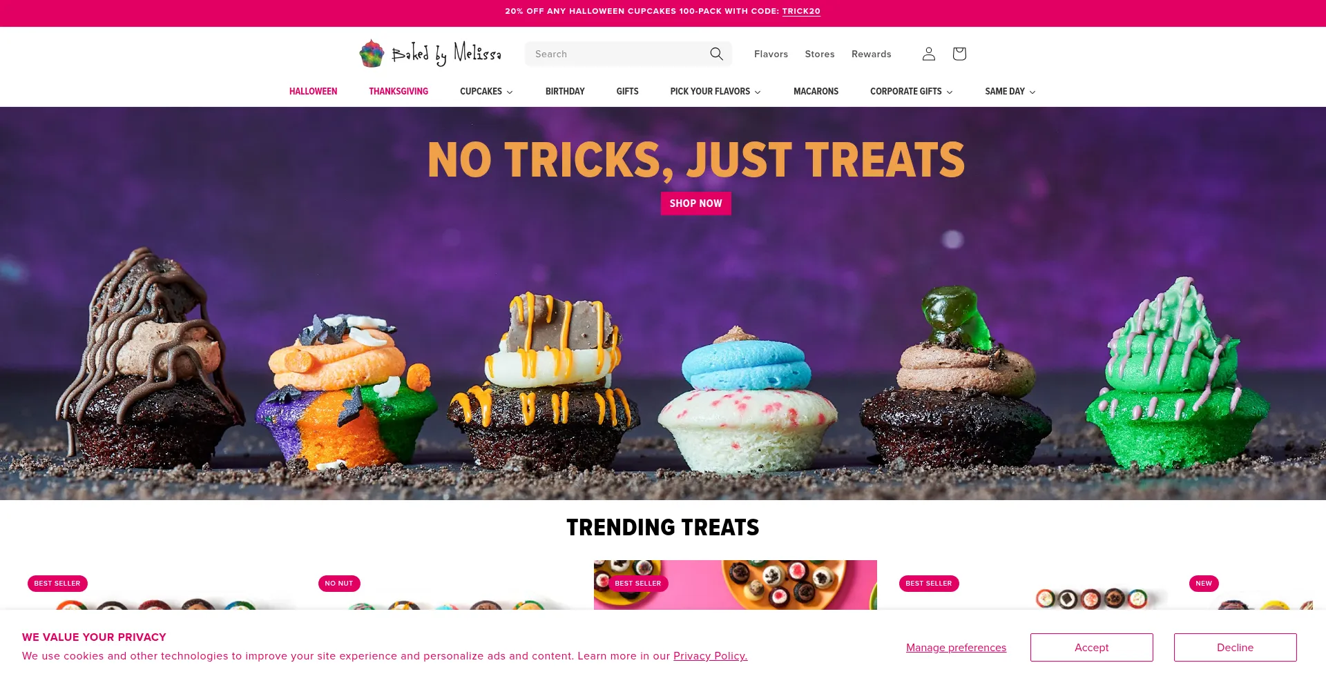 The website implements cookie consent mechanisms in compliance with privacy regulations such as GDPR or CCPA. This demonstrates that bakedbymelissa.com adheres to data protection standards and provides users with control over personal data collection practices.