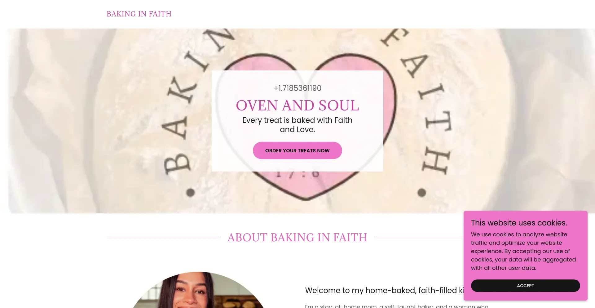 The website implements cookie consent mechanisms in compliance with privacy regulations such as GDPR or CCPA. This demonstrates that bakinginfaith.com adheres to data protection standards and provides users with control over personal data collection practices.