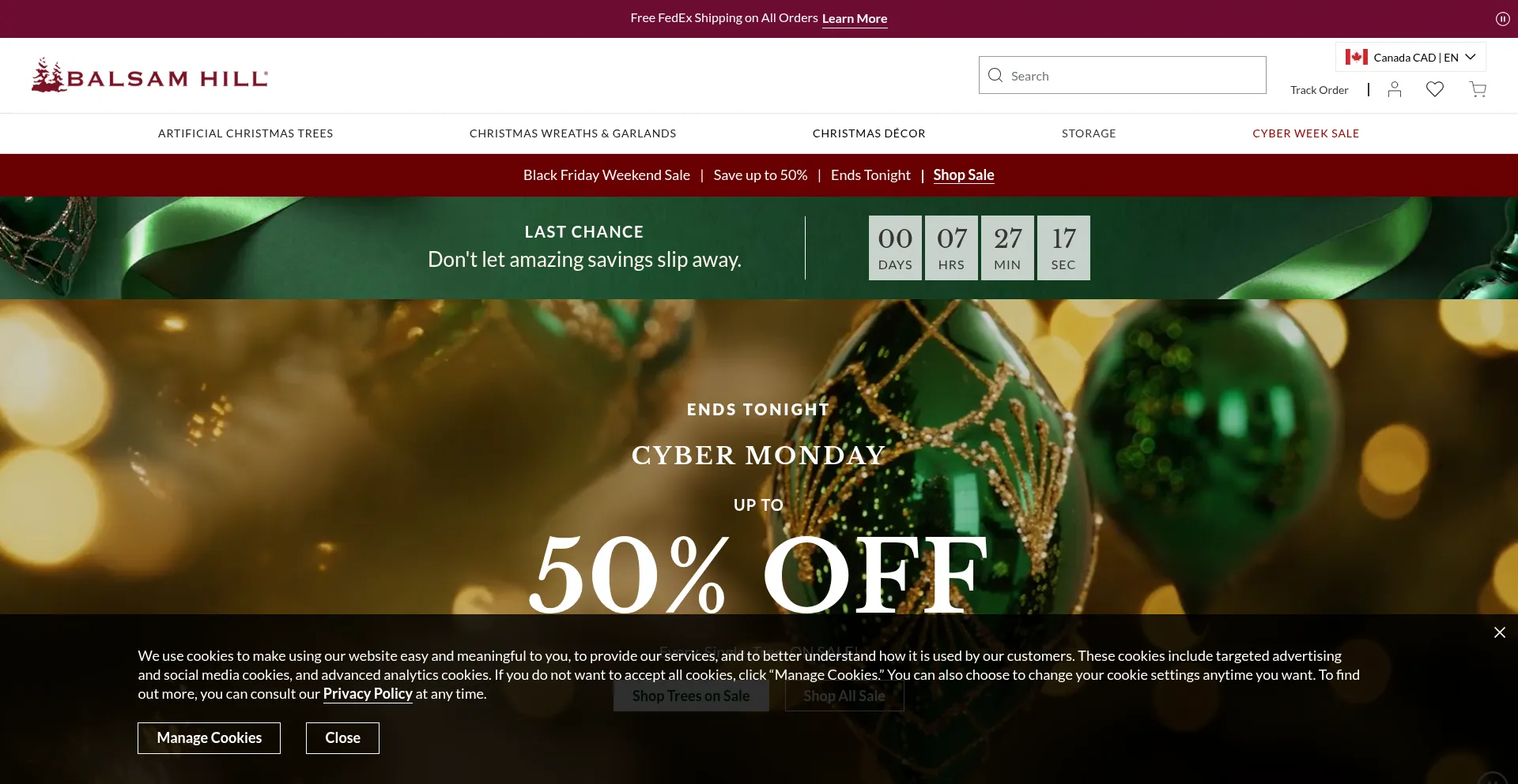 The website implements cookie consent mechanisms in compliance with privacy regulations such as GDPR or CCPA. This demonstrates that balsamhill.ca adheres to data protection standards and provides users with control over personal data collection practices.