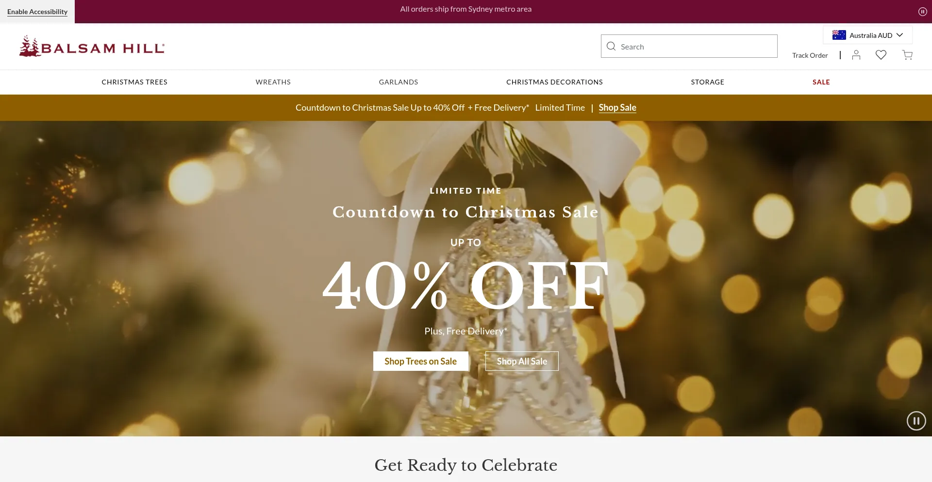 Analysis indicates that balsamhill.com.au operates as an e-commerce platform facilitating online transactions for goods or services. The website implements shopping cart functionality, payment processing systems, and product catalog features typical of commercial retail operations.