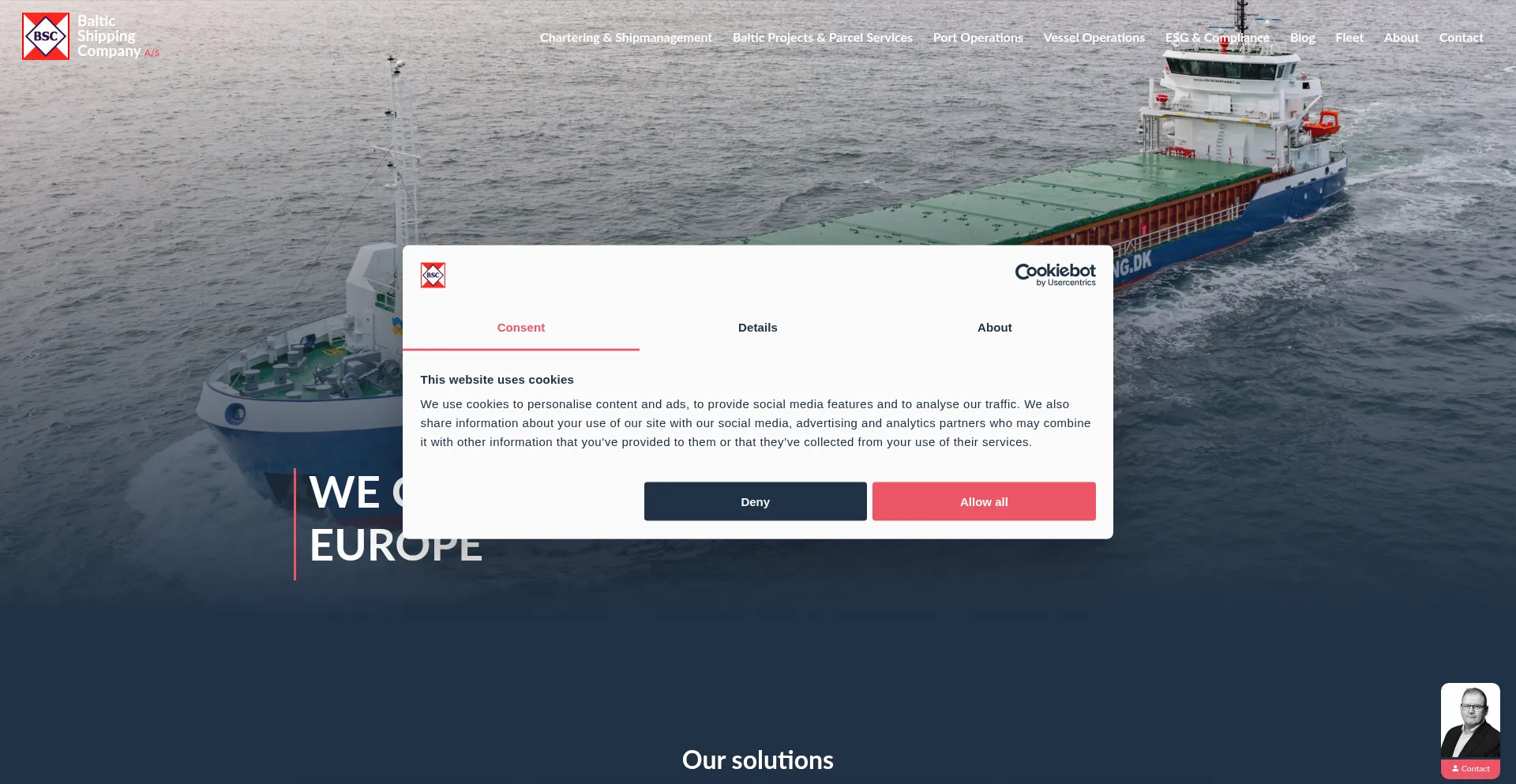 The website implements cookie consent mechanisms in compliance with privacy regulations such as GDPR or CCPA. This demonstrates that balticshipping.dk adheres to data protection standards and provides users with control over personal data collection practices.