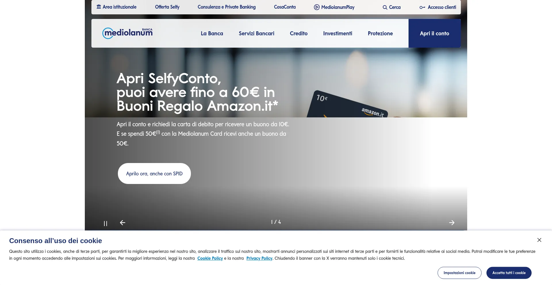 The website implements cookie consent mechanisms in compliance with privacy regulations such as GDPR or CCPA. This demonstrates that bancamediolanum.it adheres to data protection standards and provides users with control over personal data collection practices.