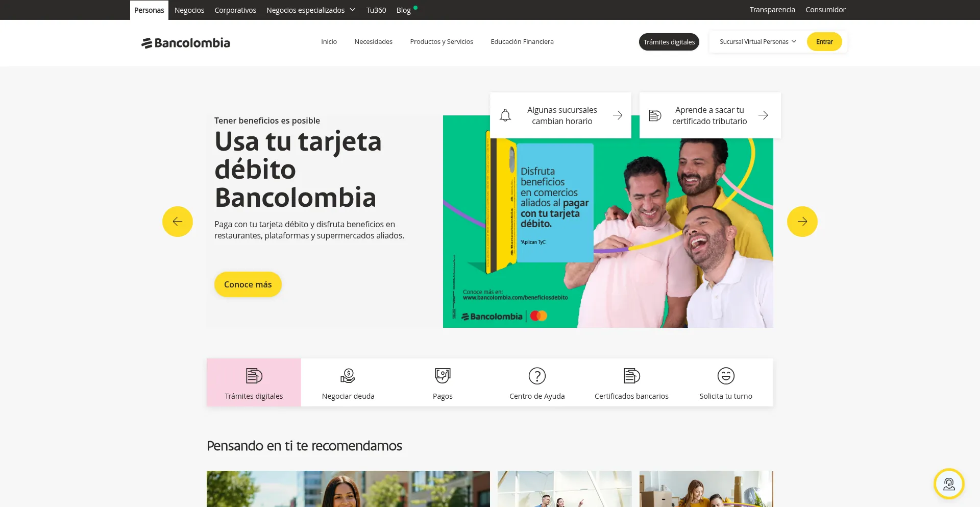 Conoce nuestra oferta de valor para las personas naturales. Encuentra productos como créditos de financiación, tarjetas de crédito, inversiones, cuentas de ahorro, cuentas de...