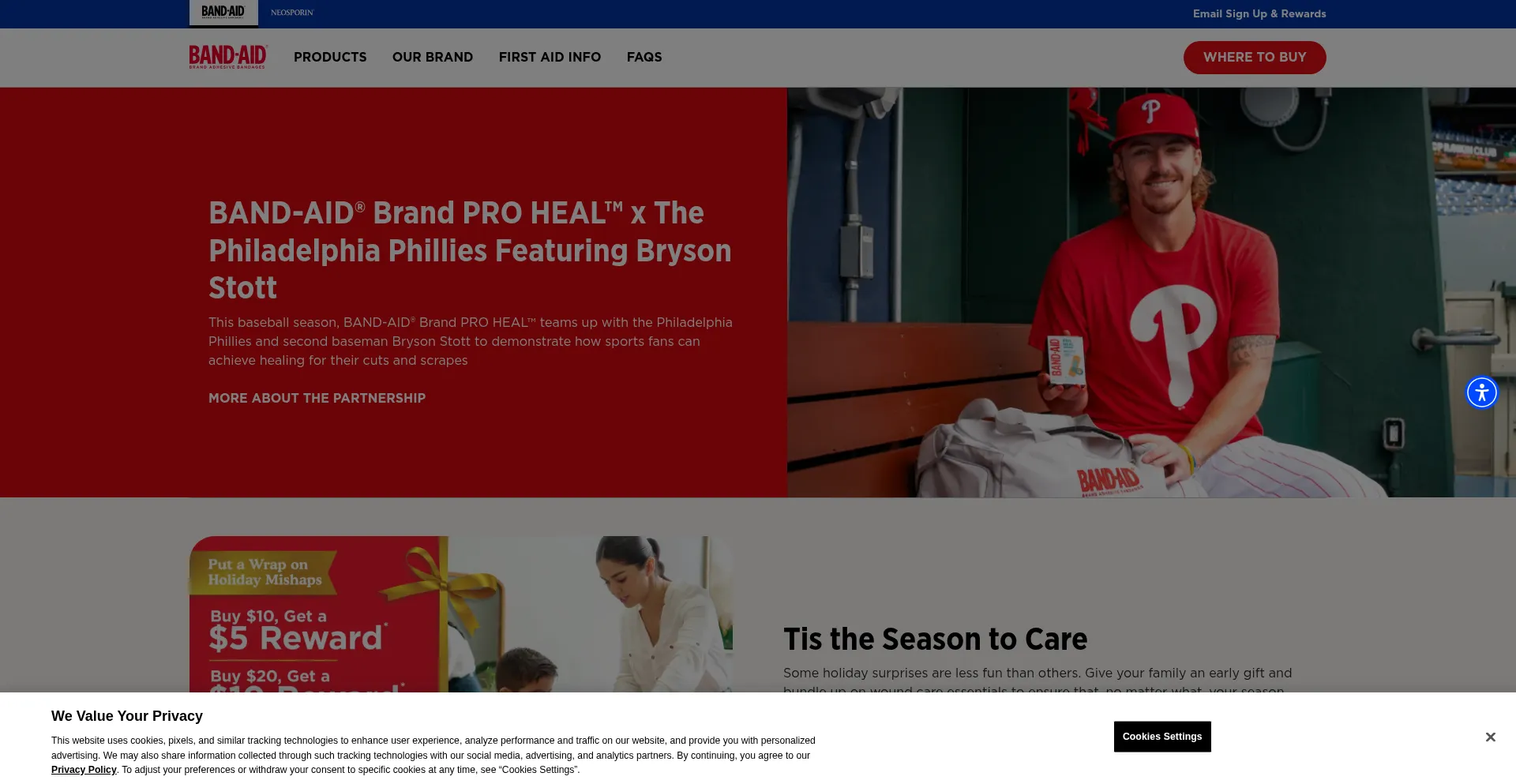 The website implements cookie consent mechanisms in compliance with privacy regulations such as GDPR or CCPA. This demonstrates that band-aid.com adheres to data protection standards and provides users with control over personal data collection practices.