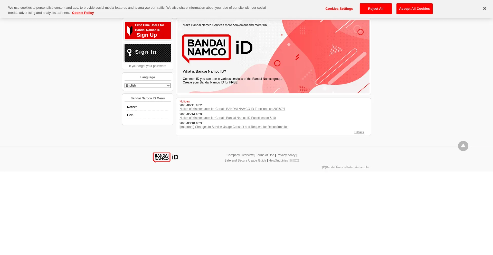 The bandainamcoid.com website implements data collection forms requesting personal information including names, email addresses, phone numbers, or other sensitive details. Users should verify the legitimacy of it and review privacy policies before submitting personal data.