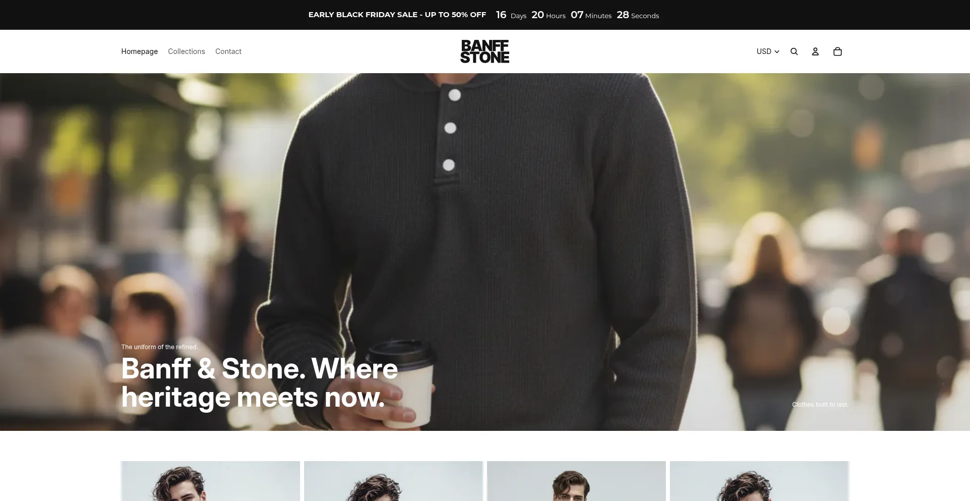 Timeless men's fashion built on quality. Premium clothing designed to last. Real style, no trends. Shop Banff & Stone.