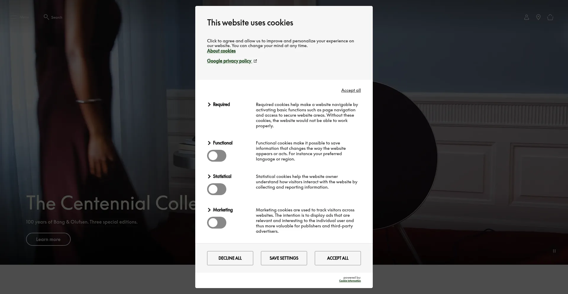 The website implements cookie consent mechanisms in compliance with privacy regulations such as GDPR or CCPA. This demonstrates that bang-olufsen.com adheres to data protection standards and provides users with control over personal data collection practices.