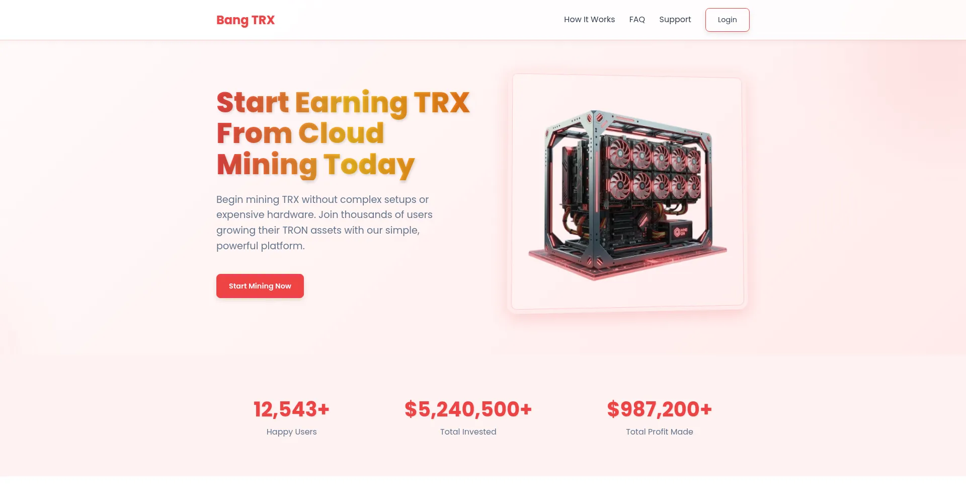 The bangtrx.com probably offers cloud mining services or cryptocurrency mining investments. Some platforms provide legitimate mining rental services, while others may use fake mining dashboards to display virtual earnings that cannot be withdrawn.