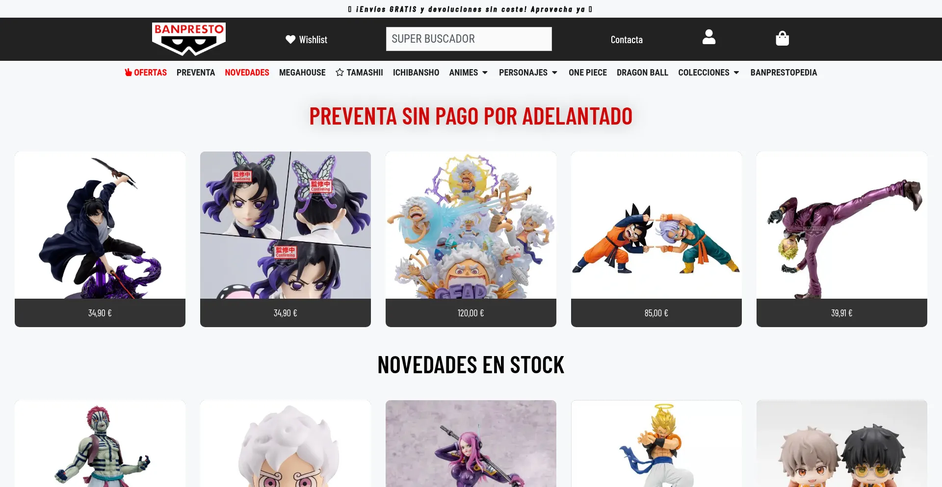 The banpresto.es website uses Google Tag Manager to add and update tracking tags on its website.