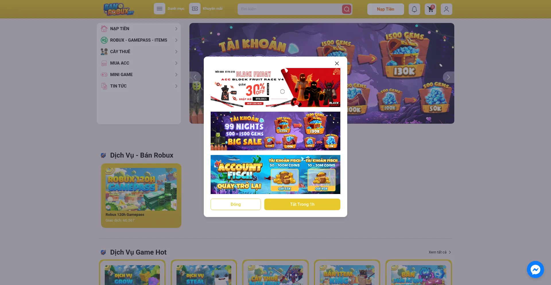 Shop nạp Robux chính hãng, robux gamepass 120h giá rẻ, tự động. Bán nick random blox fruit 20k, 50k, 120k uy tín. Shop được các độc quyền quảng cáo b�...