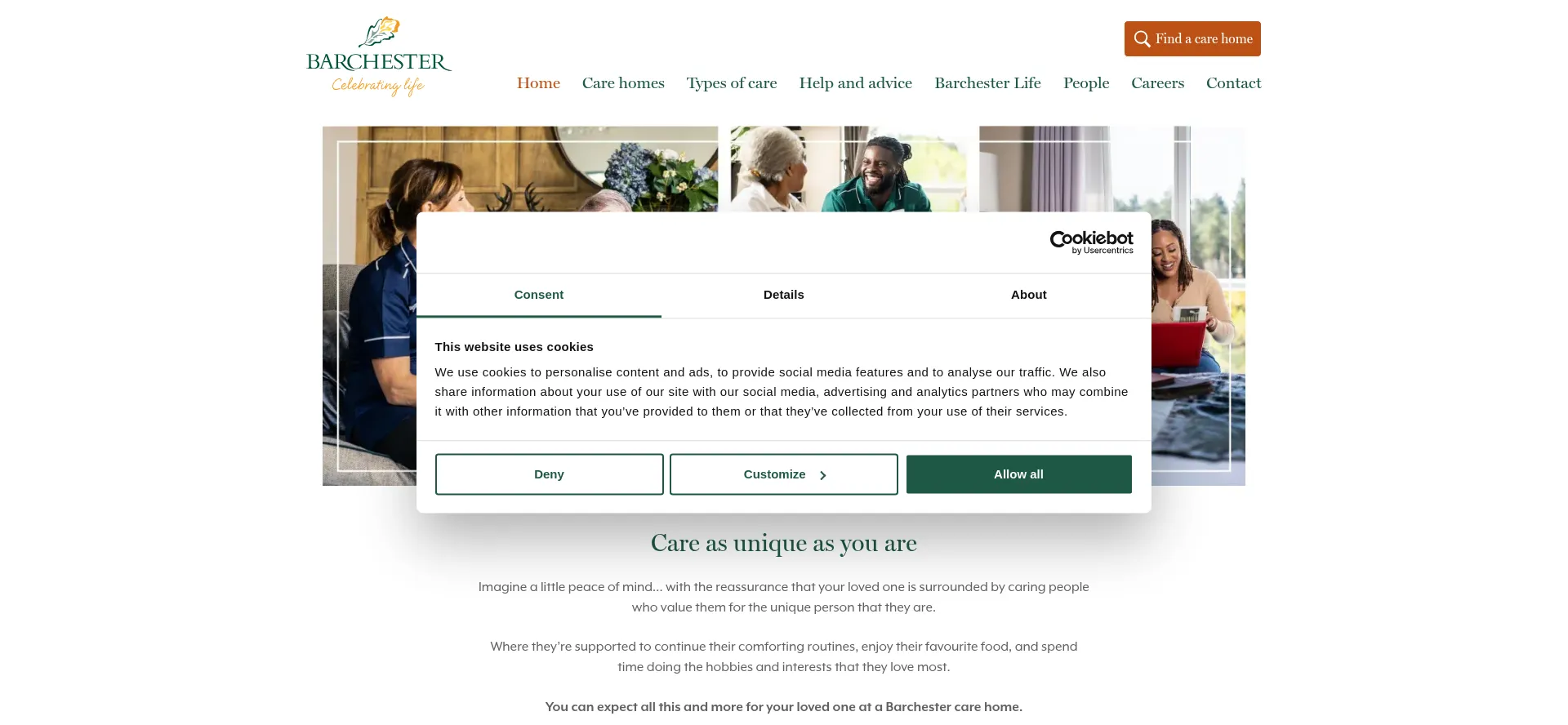 The website implements cookie consent mechanisms in compliance with privacy regulations such as GDPR or CCPA. This demonstrates that barchester.com adheres to data protection standards and provides users with control over personal data collection practices.