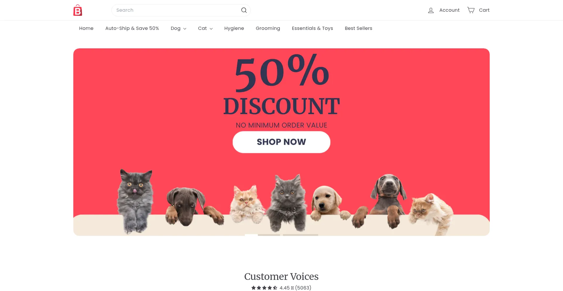 Shopping, Reliable Payment Method, Deals, Uses Free eCommerce Engine, Pets, Registration Form, Discount, Shopify Platform, Google Tag Manager, Facebook Integration, Young Domain