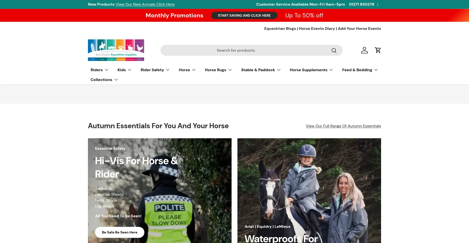 The website leverages popular product names and brands to attract traffic and generate user interest. These products may be offered through promotional campaigns or discount strategies designed to increase visitor engagement and conversion rates for barnstapleequestriansupplies.co.uk.