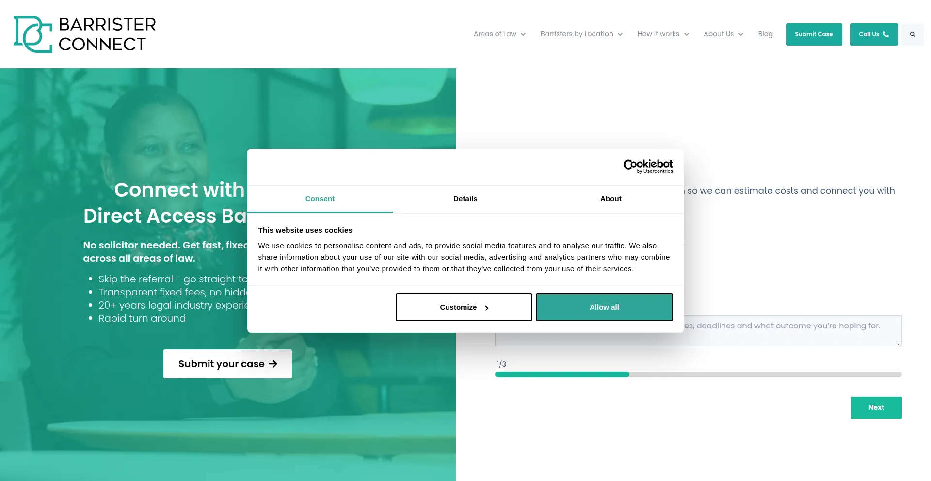The website implements cookie consent mechanisms in compliance with privacy regulations such as GDPR or CCPA. This demonstrates that barristerconnect.com adheres to data protection standards and provides users with control over personal data collection practices.