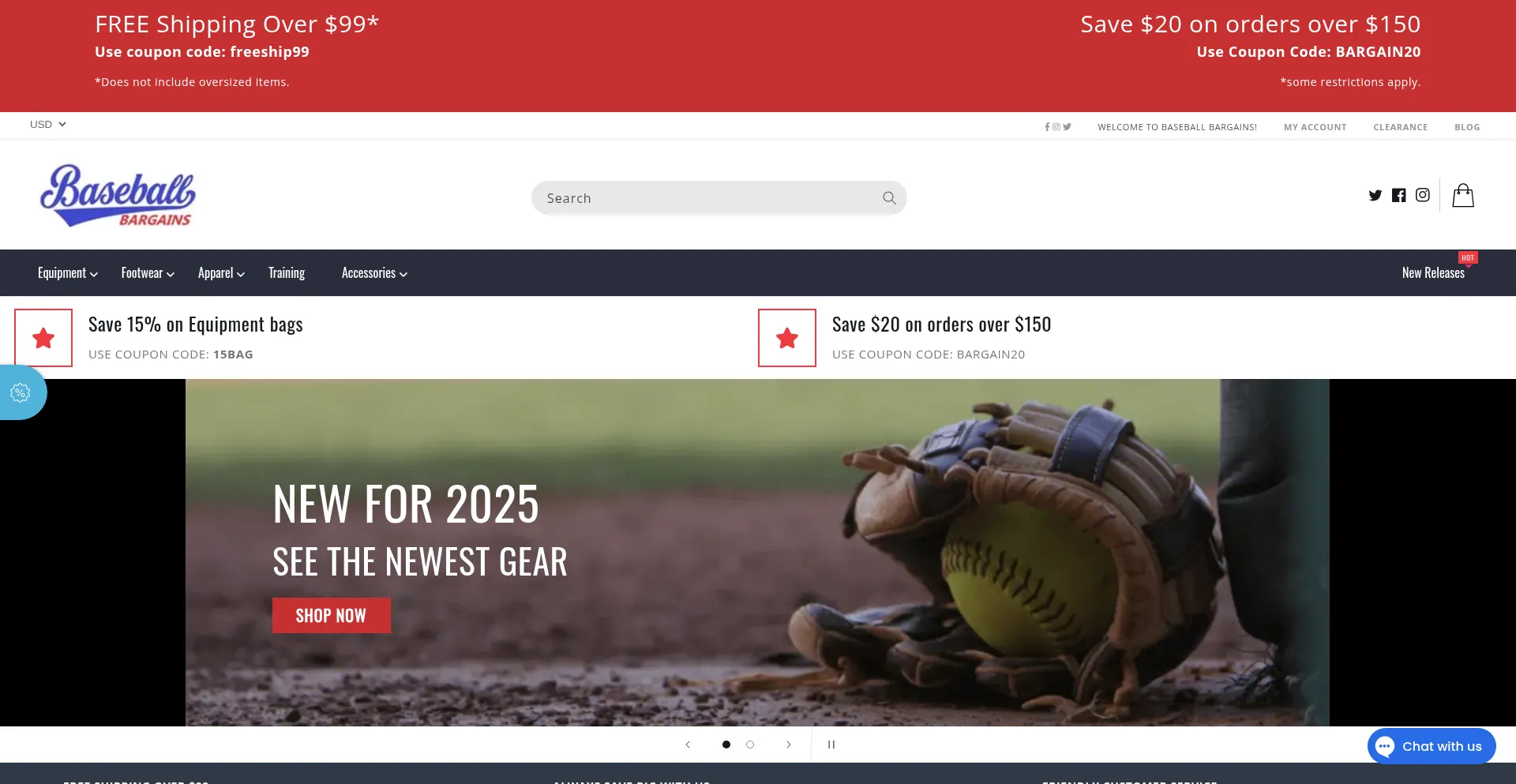 The baseballbargains.com website utilizes free e-commerce platform solutions, which may indicate cost-conscious operations but could also suggest limitations in security features, customer support, or advanced functionality compared to enterprise-grade solutions.