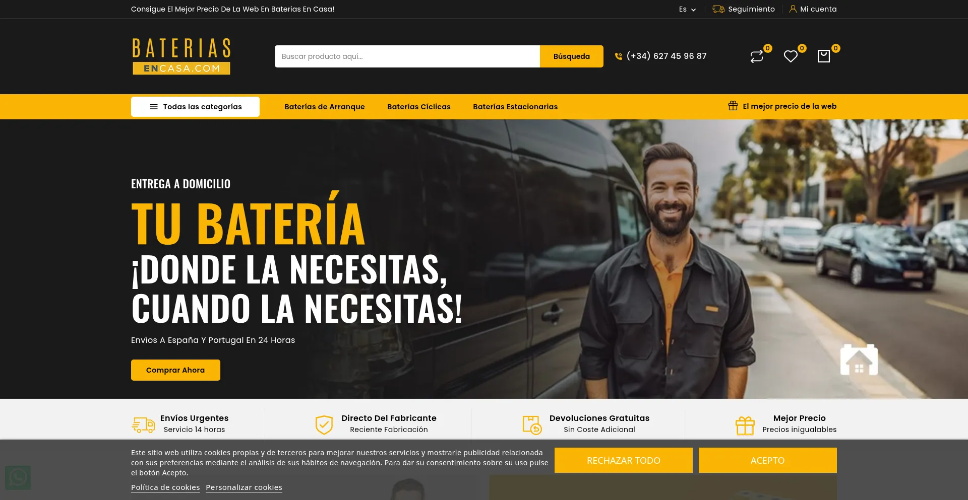 The bateriasencasa.com website uses Google Tag Manager to add and update tracking tags on its website.