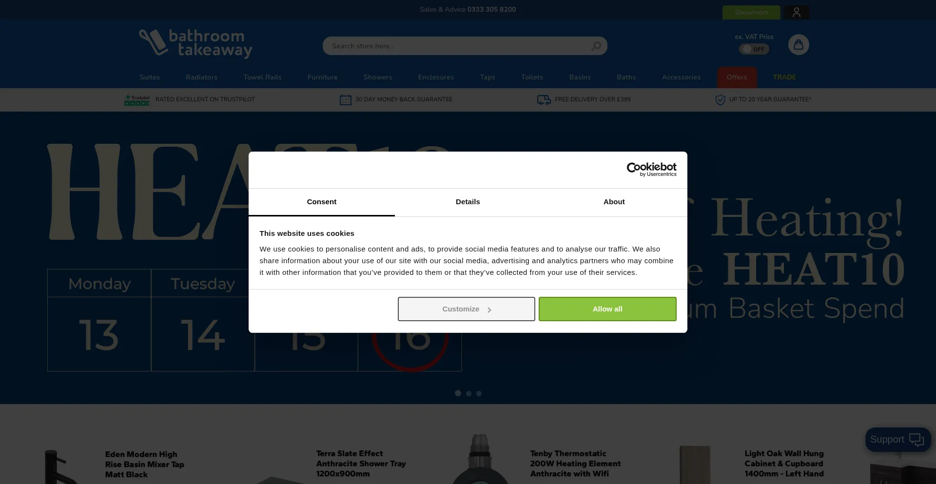 The website implements cookie consent mechanisms in compliance with privacy regulations such as GDPR or CCPA. This demonstrates that bathroomtakeaway.com adheres to data protection standards and provides users with control over personal data collection practices.