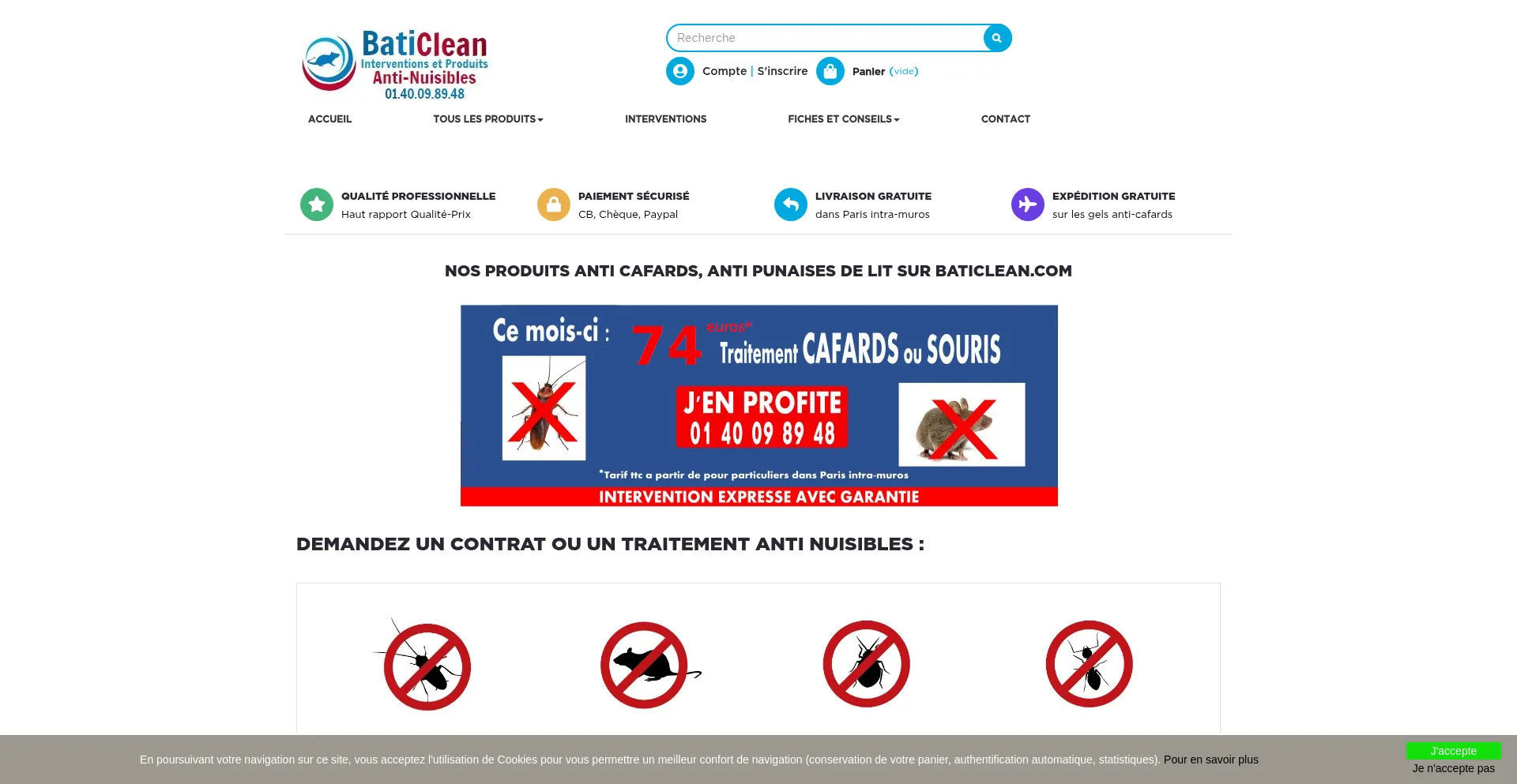 Société de dératisation, désinsectisation Paris 75011. Produit anti cafard, punaise de lit, souris. Traitement professionnel pas cher au 0140098948.