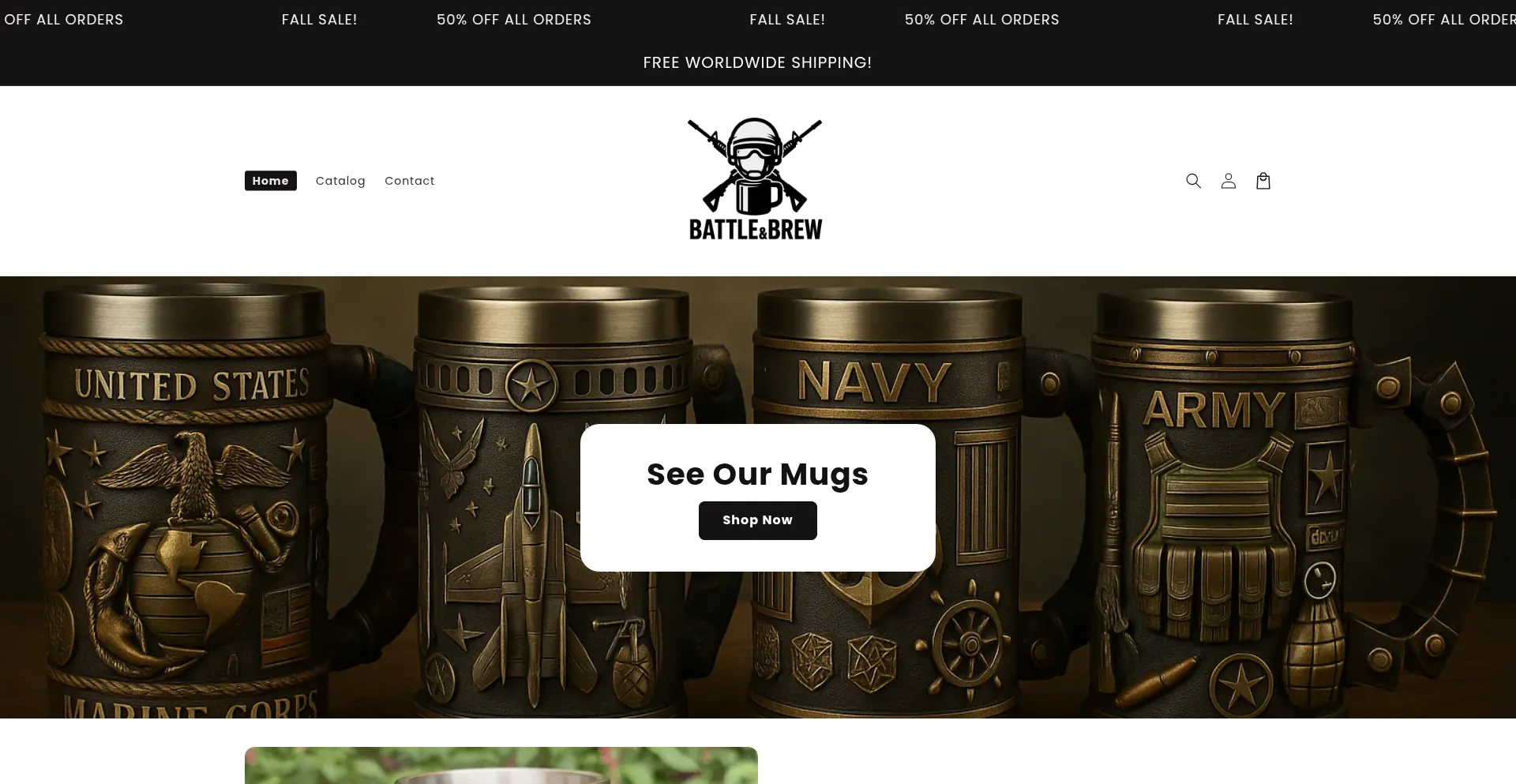 Analysis indicates that battleandbrew.shop operates as an e-commerce platform facilitating online transactions for goods or services. The website implements shopping cart functionality, payment processing systems, and product catalog features typical of commercial retail operations.