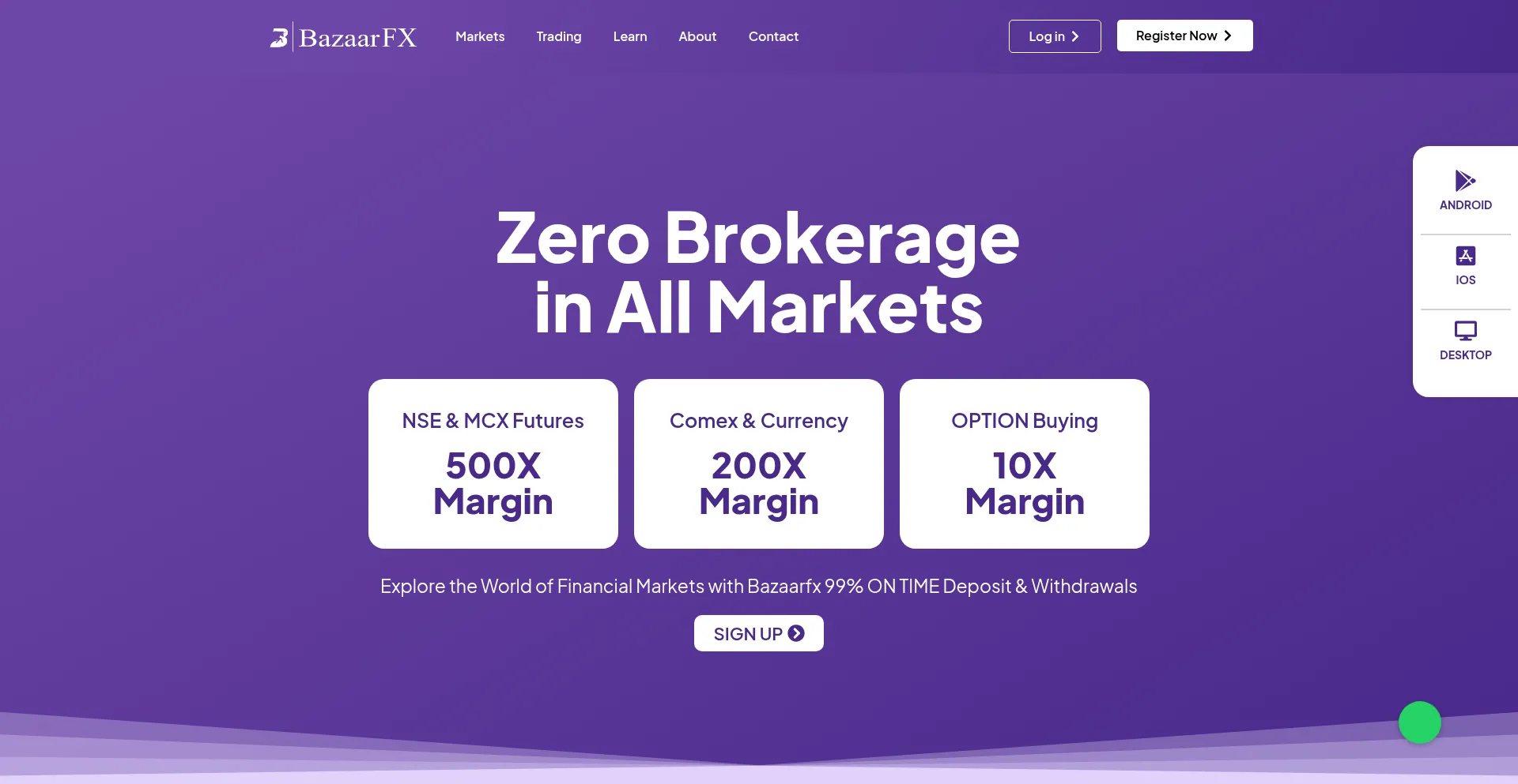 The bazaarfx.com website offers a mobile application for Android devices, indicating expanded platform presence beyond web-based services.