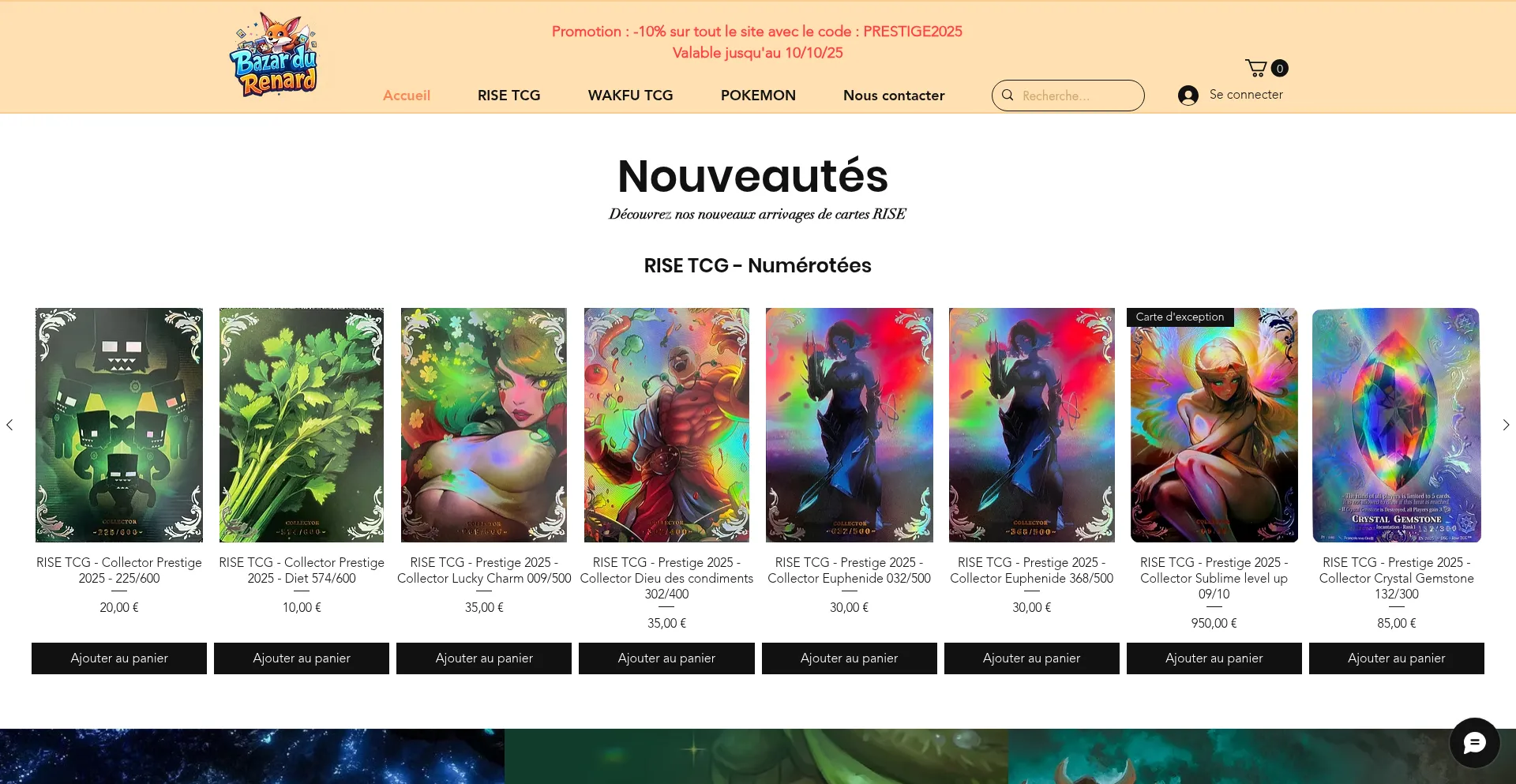 La boutique Bazar du Renard propose une large gamme de cartes à jouer et à collectionner RISE TCG et Pokémon