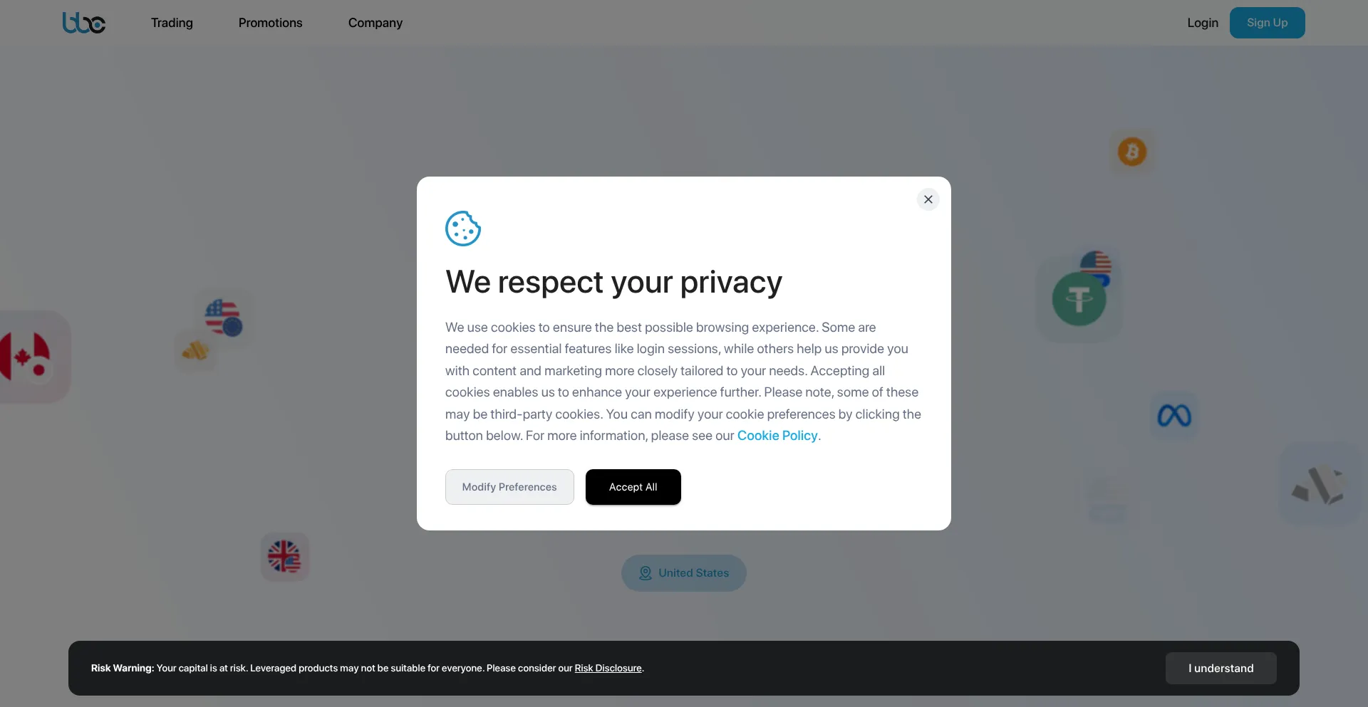 The website implements cookie consent mechanisms in compliance with privacy regulations such as GDPR or CCPA. This demonstrates that bbcorp.trade adheres to data protection standards and provides users with control over personal data collection practices.