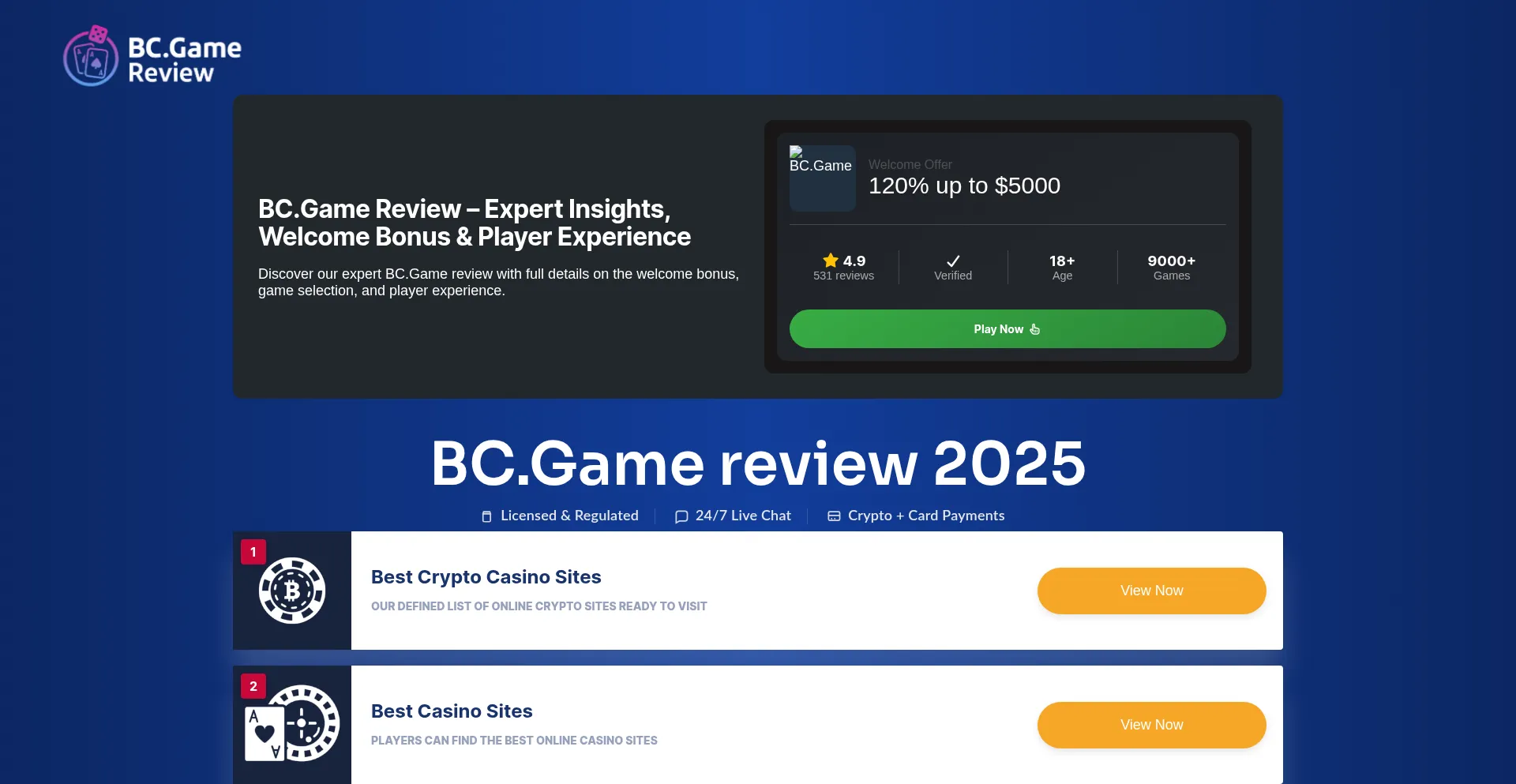 Discover our expert BC.Game review with full details on the welcome bonus, game selection, and player experience.